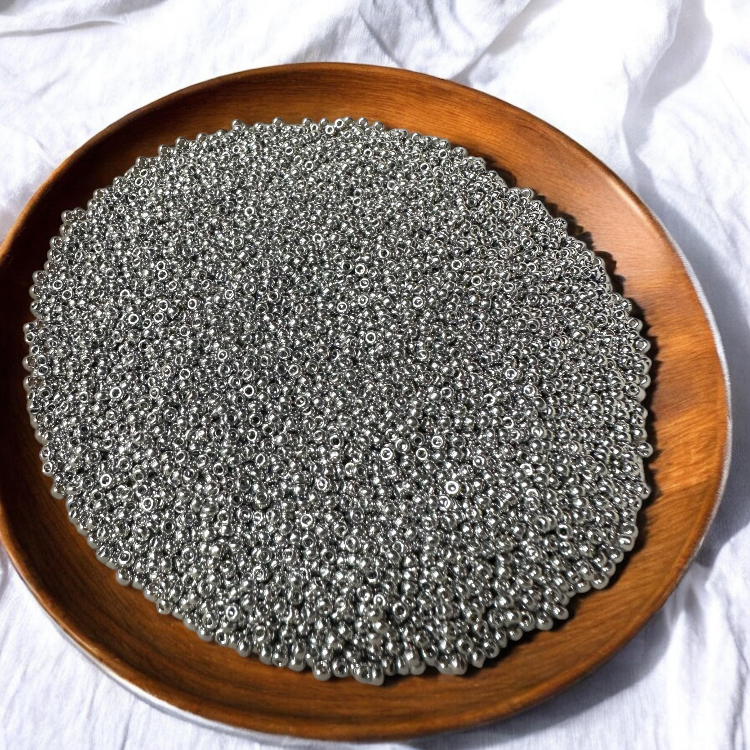 Premium Japanese seed beads with a sleek, high-shine silver tone. These 2mm beads (1.5mm hole to hole) are uniform—ideal for bead weaving, embroidery, and detailed designs. Palladium plating offers a luxurious finish with excellent durability and tarnish resistance.