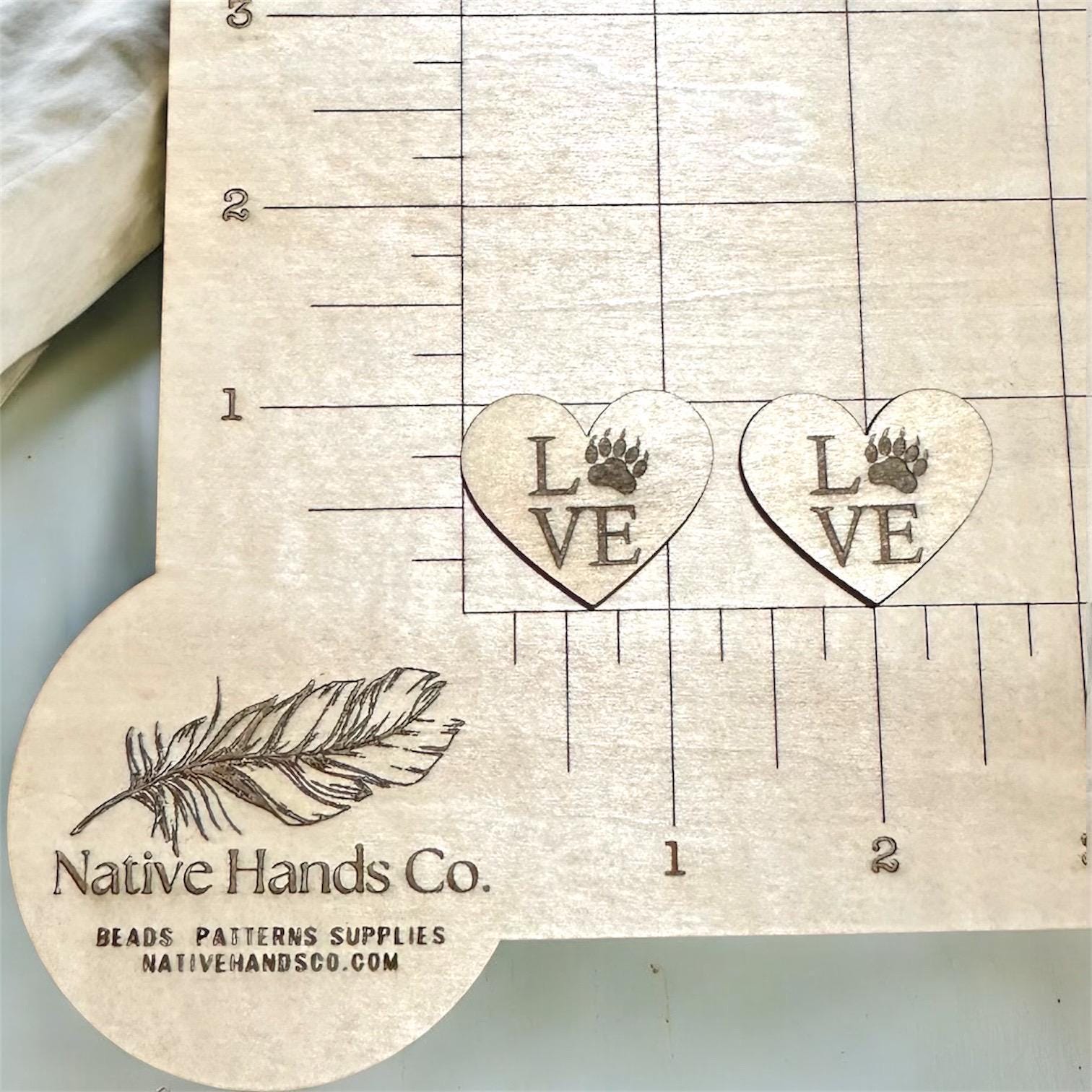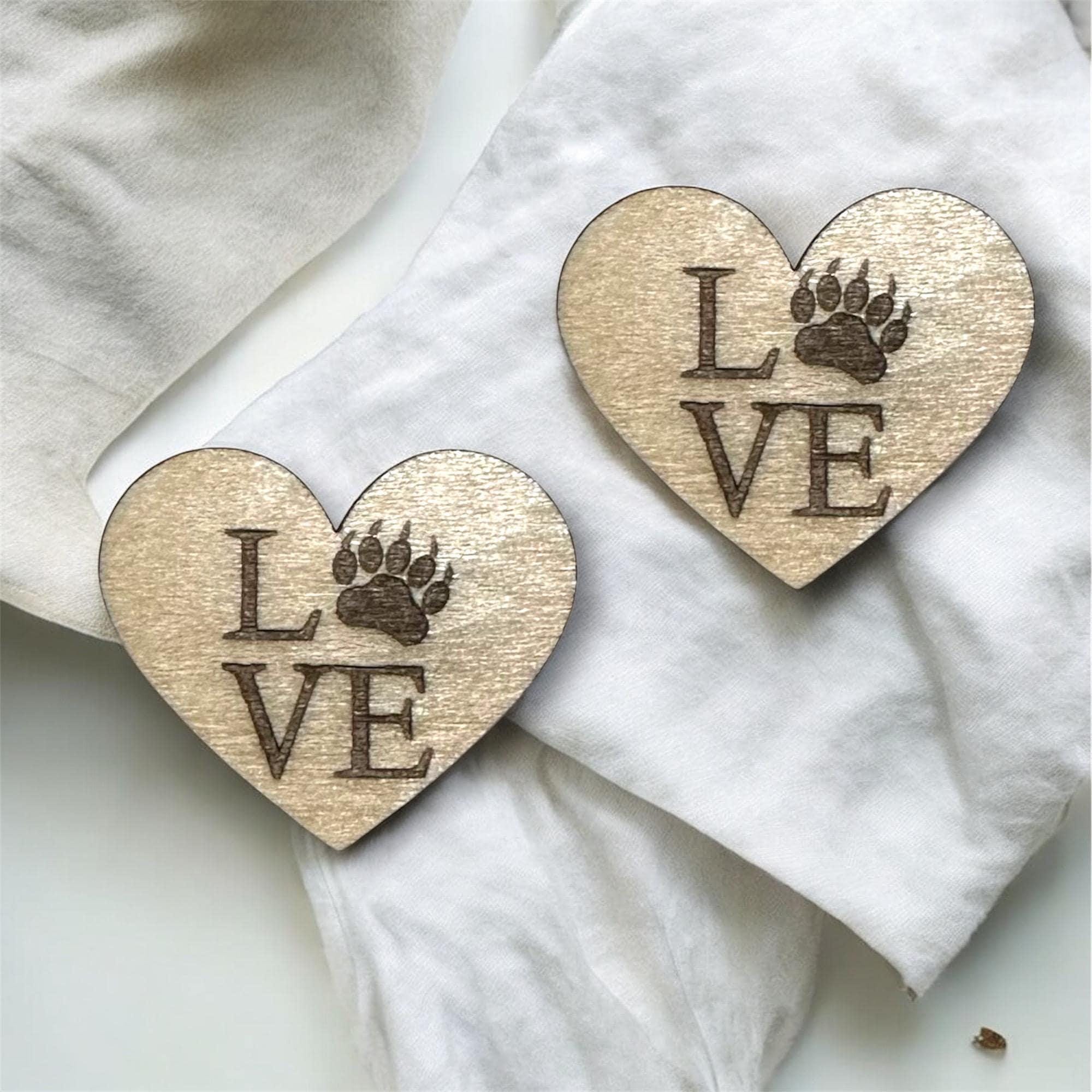 1.25” wide by 1.10” high, heart shaped bear paw accent cabachon is laser cut and engraved by me. Material is basswood plywood, 3mm thick, no holes. The wood color is light, and grain/color may vary due to the nature of wood.