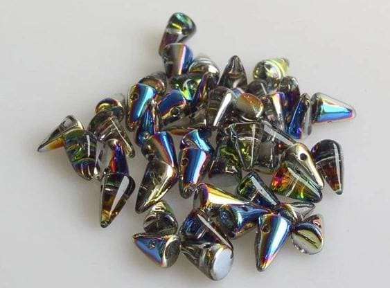 Baby Spikes | crystal clear with AB (aurora borealis) coating (5x8mm, Top-Drilled, Pack of 30)